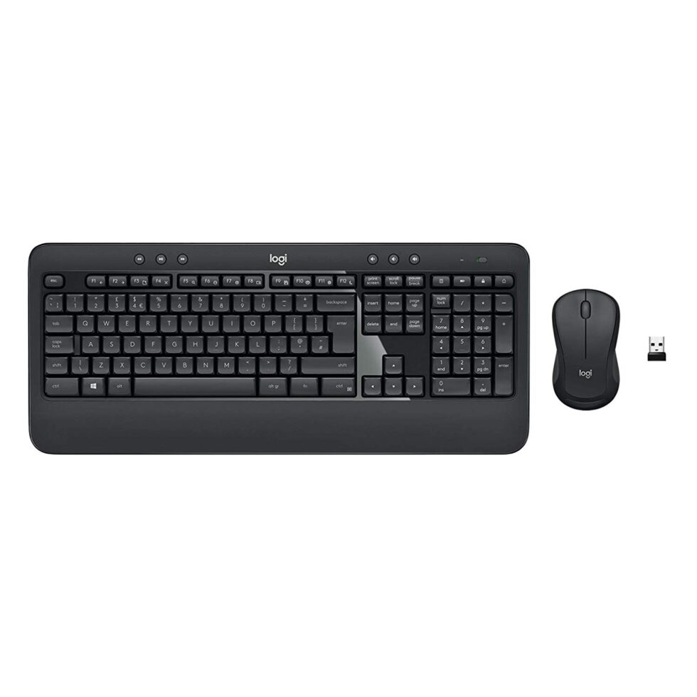 Dieses Desktop Set besteht aus einer Tastatur und einer Maus, welche mittels einem winzigen USB-Empfänger verbunden werden und damit eine kabellose Verbindung von bis zu 10 m herstellen. Die flüsterleise Tastatur ist mit Tasten in vertrauter Form, Größe und Textur sowie einer Handballen-Auflage und ausklappbaren Füßen ausgestattet und bietet daher ein hohes Maß an Bedienkomfort. Die Maus passt sich mit ihrer geschwungenen Form bequem an jede Handfläche an und ist für Links- und Rechtshänder gleichermaßen gut bedienbar. Dank der praktischen Sondertasten ist Ihnen ein direkter und schneller Zugriff auf Medienwiedergabe, Taschenrechner und Batteriestandsanzeige gegeben. Mittels Logitech Options lassen sich diese Funktionstasten individuell an Ihre Anforderungen anpassen.